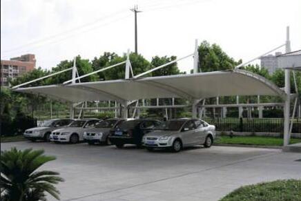 3、膜結(jié)構(gòu)停車棚:自重輕,具有良好的受力特點——成為大跨度空間結(jié)構(gòu)的主要形式之一。停車場的規(guī)劃和建設(shè)成為現(xiàn)代城市規(guī)劃的重要組成部分,變的越來越重要。膜結(jié)構(gòu)輕巧、別致的造型在停車場及候車廳的建設(shè)中擔(dān)當(dāng)了重要角色,除了滿足防風(fēng)雨、防日曬等基本功能外,并有較好的標(biāo)識招攬效果,展現(xiàn)了人們個性化的一面。膜結(jié)構(gòu)車棚的篷布采用PVC/PVDF/PTFE/ETFE,而膜材的最大特點是強度高、耐久性好、防火難燃、自潔性好,不受紫外線影響,使用壽命長,一般15-30年。具有高透光率,透光率為13%,對熱能反射率73%,熱吸收量很少。正是因為這種劃時代的膜材料的發(fā)明,使膜結(jié)構(gòu)車棚成為現(xiàn)代化的永久建筑。